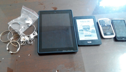 Tại đây, hai đối tượng lấy 2 chiếc điện thoại di động, một chiếc iPad 2, sách điện tử Kindle Pad, 6 chiếc vòng đeo tay và 10 chiếc nhẫn (chưa xác định kim loại gì).