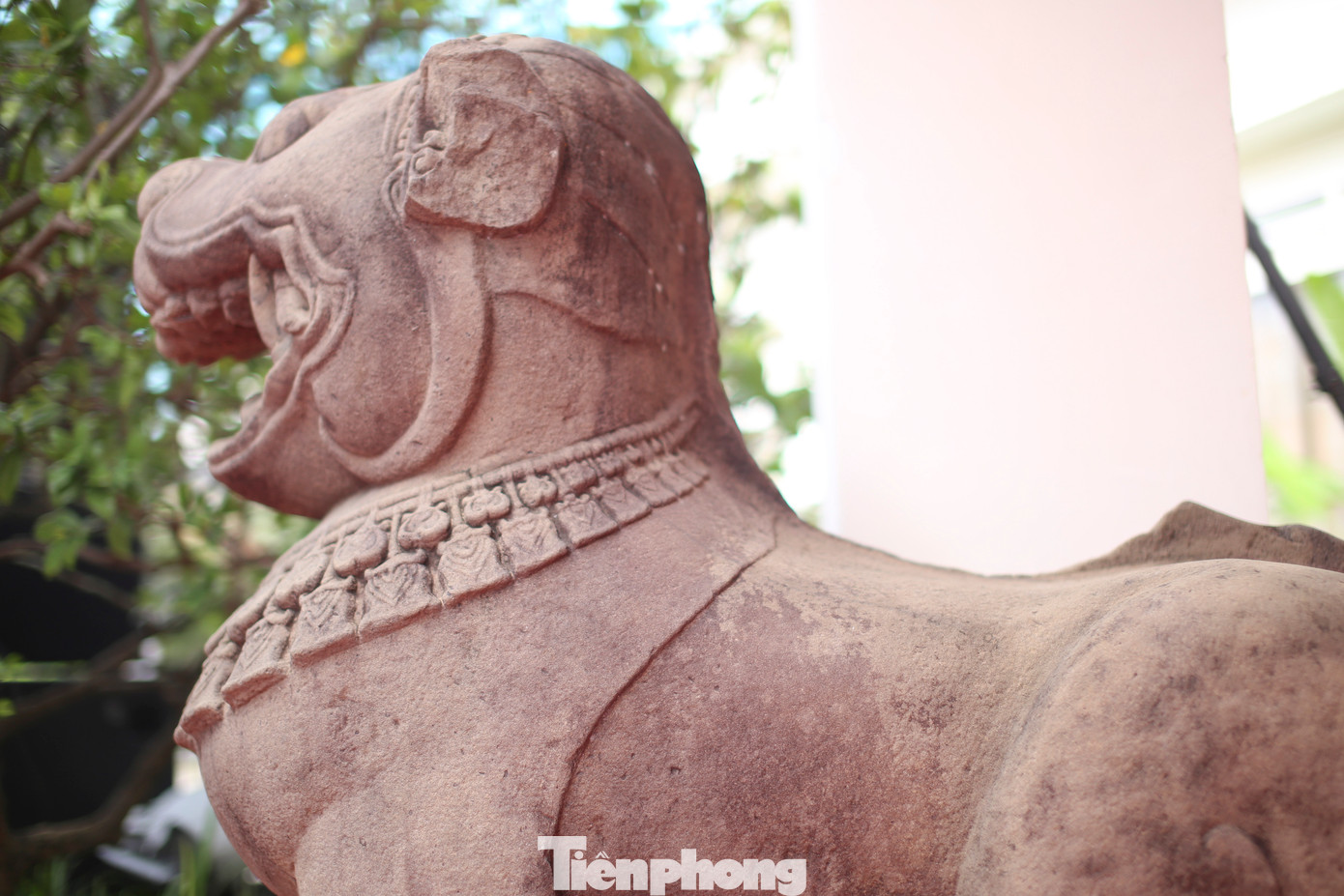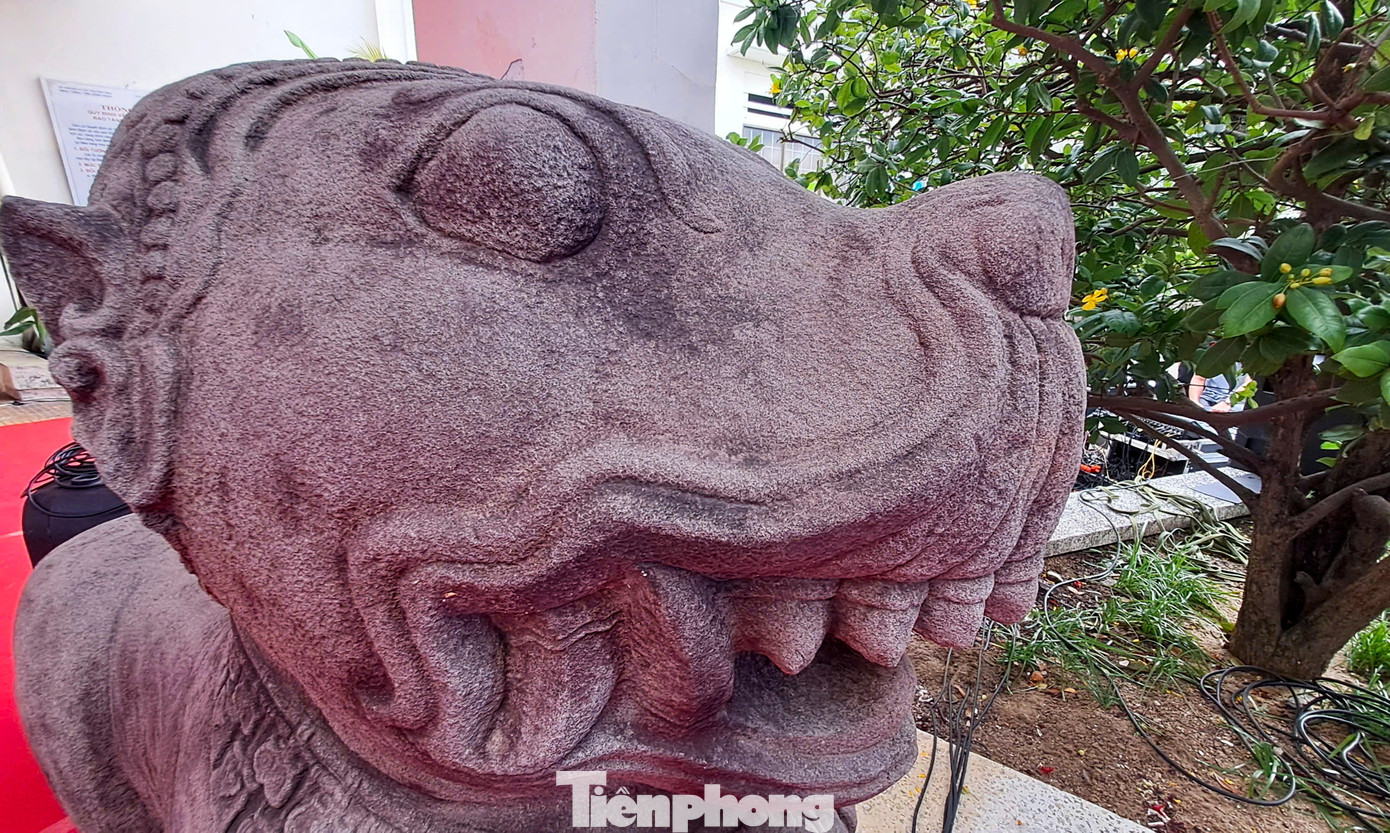 | Hai tượng sư tử đá thành Đồ Bàn được công nhận Bảo vật Quốc gia. Ảnh: Trương Định. |