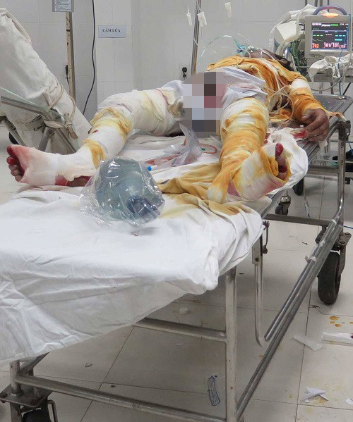 Anh Nhật đang được cấp cứu tại bệnh viện đa khoa tỉnh Quảng Nam. Ảnh: CTV