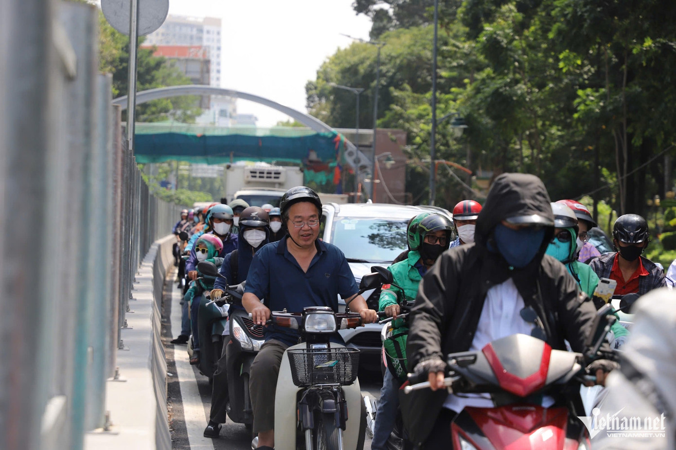 | Kẹt xe giữa trưa nắng khiến người dân vất vả di chuyển qua khu vực hầm chui. |
