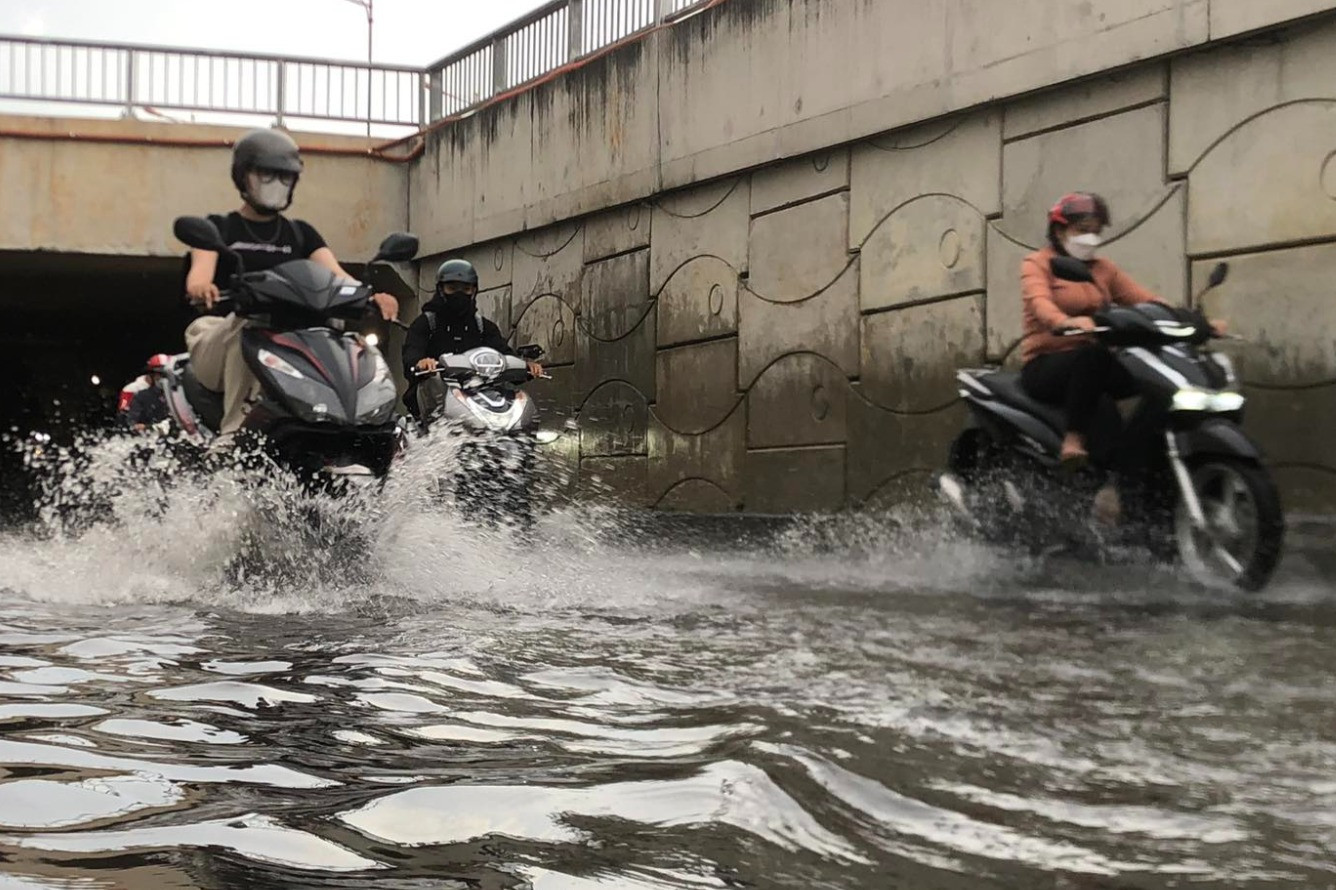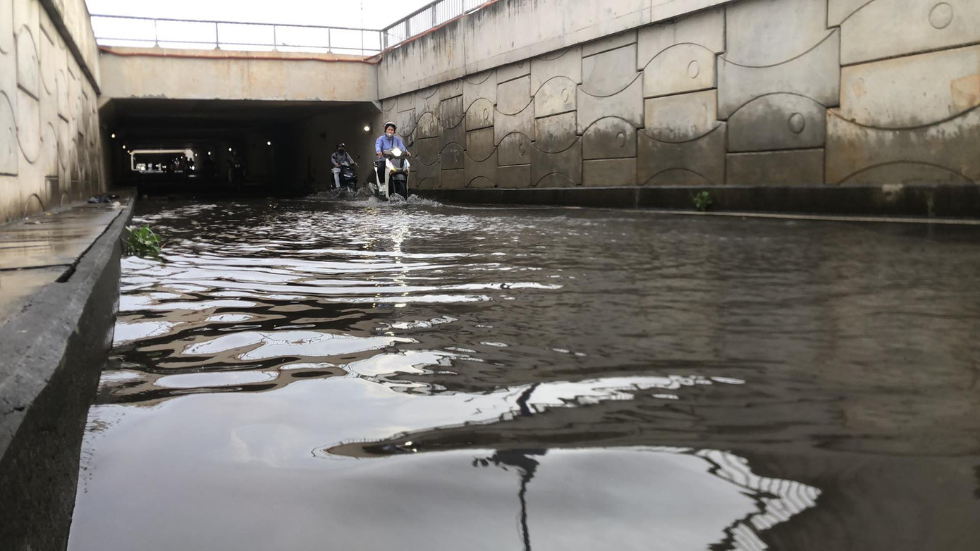 Hầm chui trước cổng Bến xe Miền Đông mới lại ngập lênh láng nước. Ảnh: Nguyễn Hoàng.