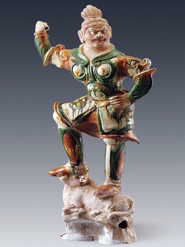 "Sự hồi sinh của nhà Đường đã xóa tội cho Diêm Thức Vi. Do đó, phần còn lại của hài cốt được mai táng tại quê nhà", tấm bia viết. Trong ảnh, một thần gác mộ khác, tóc gáy hình ngọn lửa cao 95 cm.