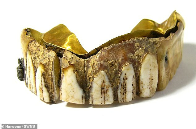Theo Daily Mail, hàm răng giả được làm từ ngà, có thể là ngà voi biển hoặc răng hà mã, và được chế tác hoàn toàn thủ công.