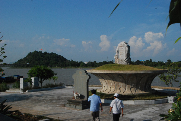 Bia không dựng bên kia đường (mặt đê) hiện trường của buổi sáng bi thương mà chếch sát sông như một vế đối với núi Ngọc Hàm Rồng.