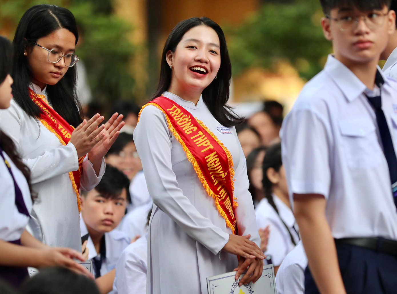| Lễ khai giảng năm nay tại Huế diễn ra với thủ tục ngắn gọn nhưng ý nghĩa, thực sự là ngày hội đến trường đầy hân hoan của hàng trăm nghìn học sinh. (Ảnh: Ngọc Văn) |