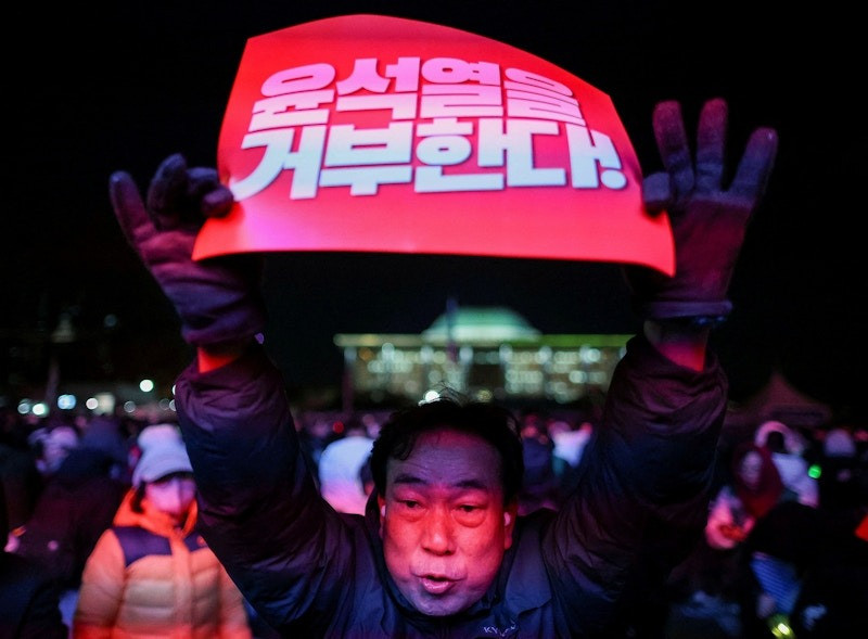 | Người dân biểu tình kêu gọi luận tội tổng thống vào tối 7/12 ở Seoul. (Ảnh: Reuters) |