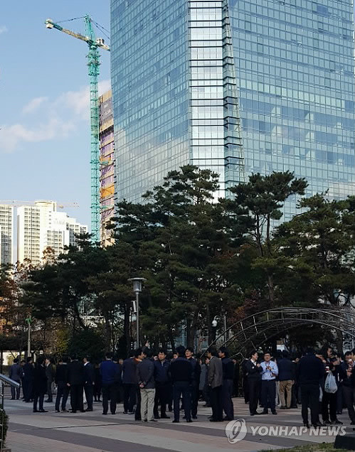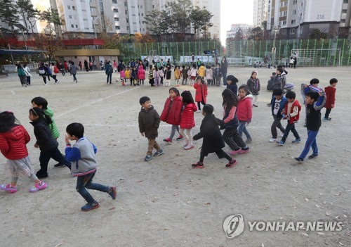 Các em học sinh tiểu học tại Pohang phải sơ tán khỏi phòng học để tránh tổn thương do động đất.