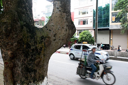 Hàng xà cừ với hàng chục năm tuổi, vừa tay hai người ôm, tán rợp bóng mát xuống đường Kim Mã sẽ không còn nữa khi dự án đường sắt đô thị đi qua đây trong thời gian tới.