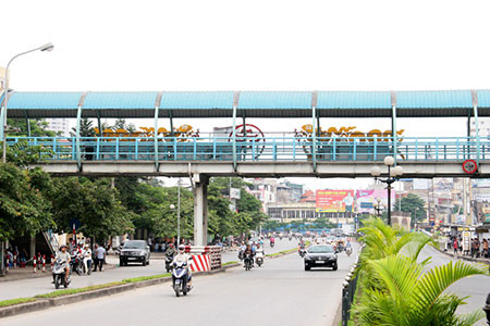 Dự kiến, cây cầu đi bộ trước cổng Đại học Giao thông Vận tải cũng bị phá bỏ để nhường chỗ cho nhà ga trên cao. Cầu vượt bộ hành này được đưa vào hoạt động tháng 10/2007, với giá trị là 4,4 tỷ đồng.