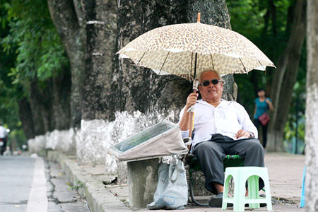 Một cây đa cổ thụ tỏa bóng mát phủ cả hai làn đường Kim Mã (gần dốc Voi Phục).