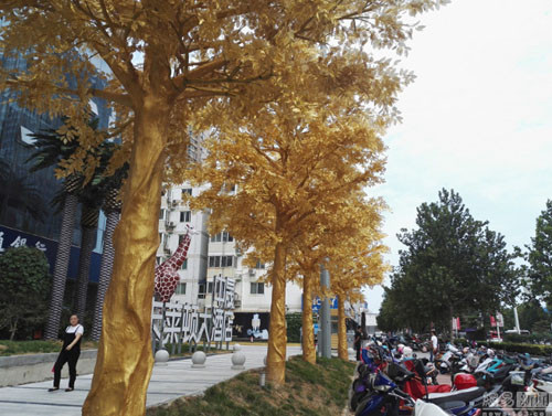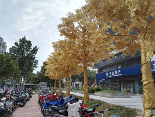 Hiện vẫn chưa ai xác nhận việc hàng cây được mạ vàng thật hay chỉ là phủ lớp sơn có màu như vậy.