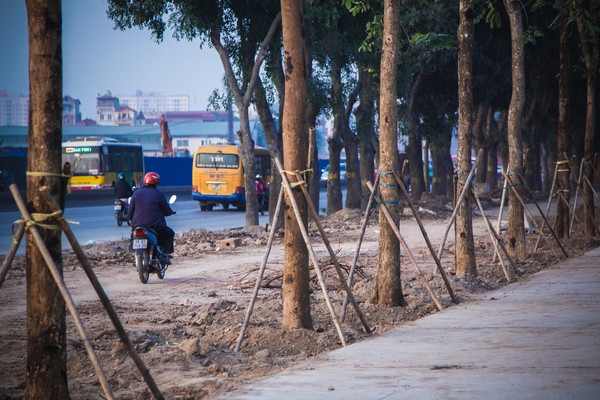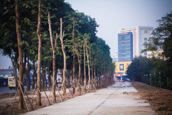 Dự kiến, những hàng cây xà cừ, cây lâu năm cũ trên tuyến đường được chặt hạ, đánh chuyển hết trong tháng 12/2017.