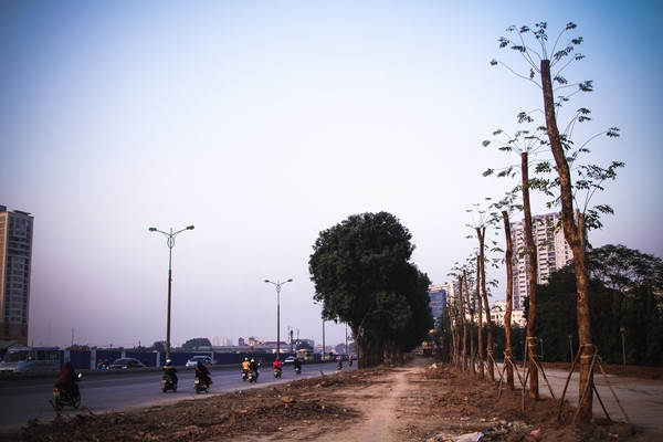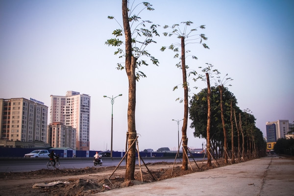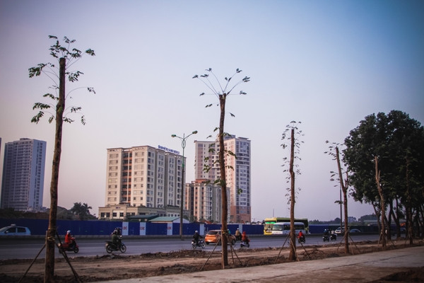 Nằm trong dự án thi công lớn, hàng cây thay thế thuộc đường Phạm Văn Đồng (Hà Nội) nằm bên trong cách hàng cây cũ khoảng 10m.
