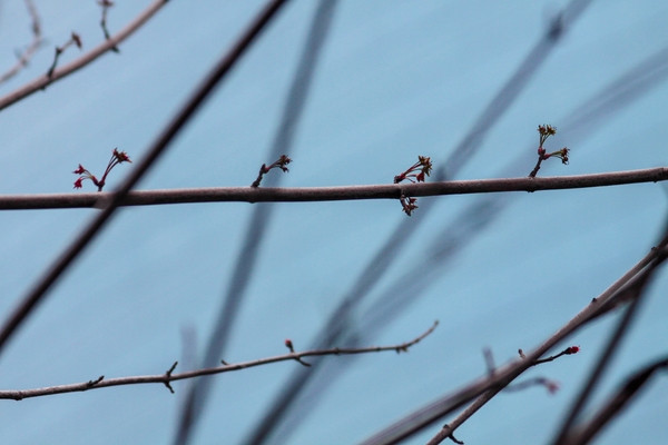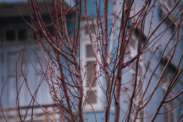 Rất nhiều chồi non mọc lên trên các cành cây trong thời tiết hơi se lạnh của Hà Nội.