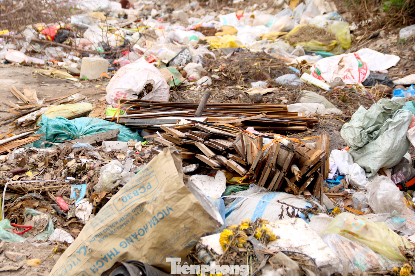 | Rác thải sau Tết như hoa đào, quất... trạc thải xây dựng bị vứt ngổn ngang tại các bãi rác lộ thiên ven đường Phạm Tu. |