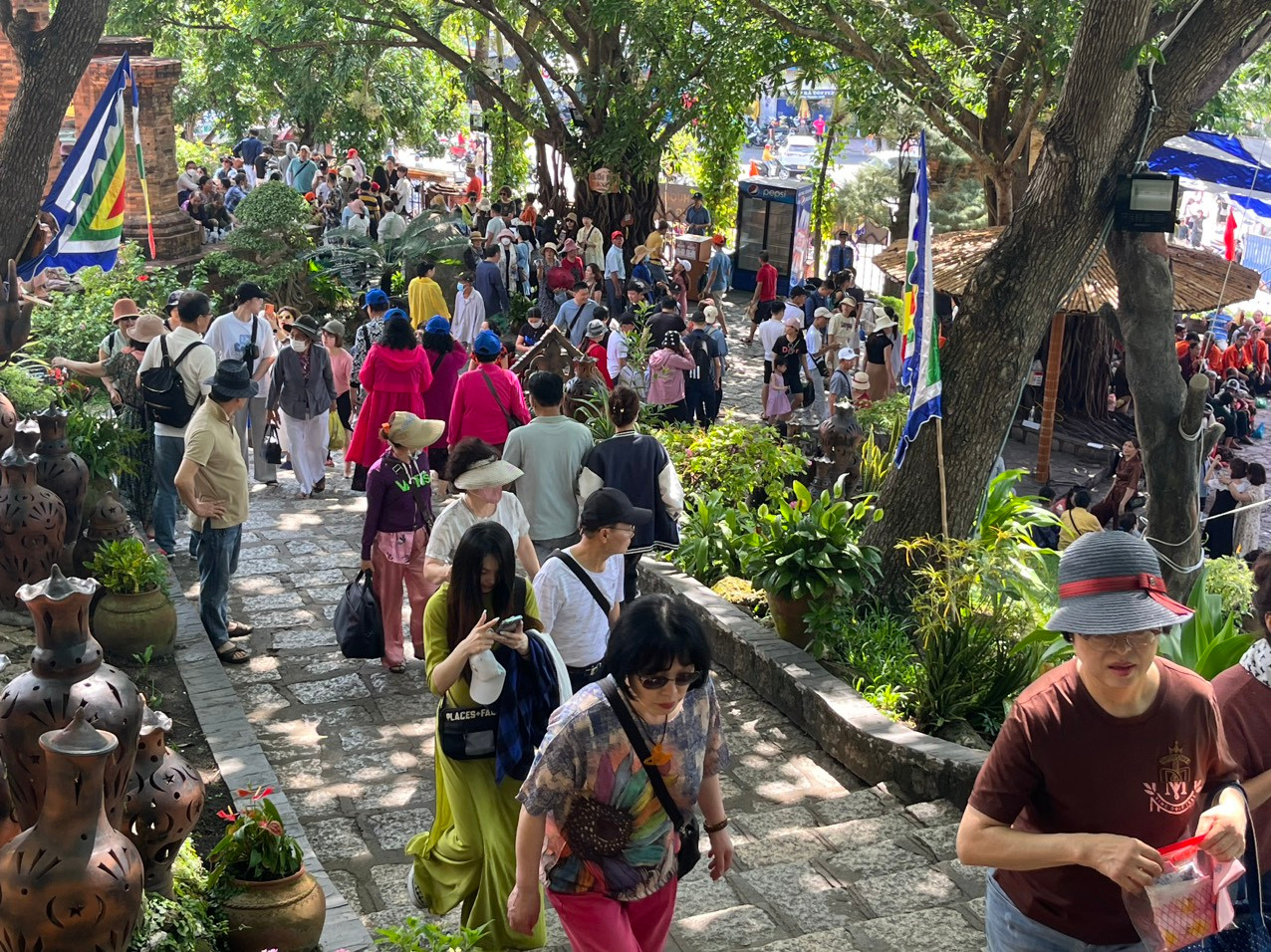 | Hàng nghìn người dân và du khách đổ về dâng hương tại Tháp Bà Ponagar. |