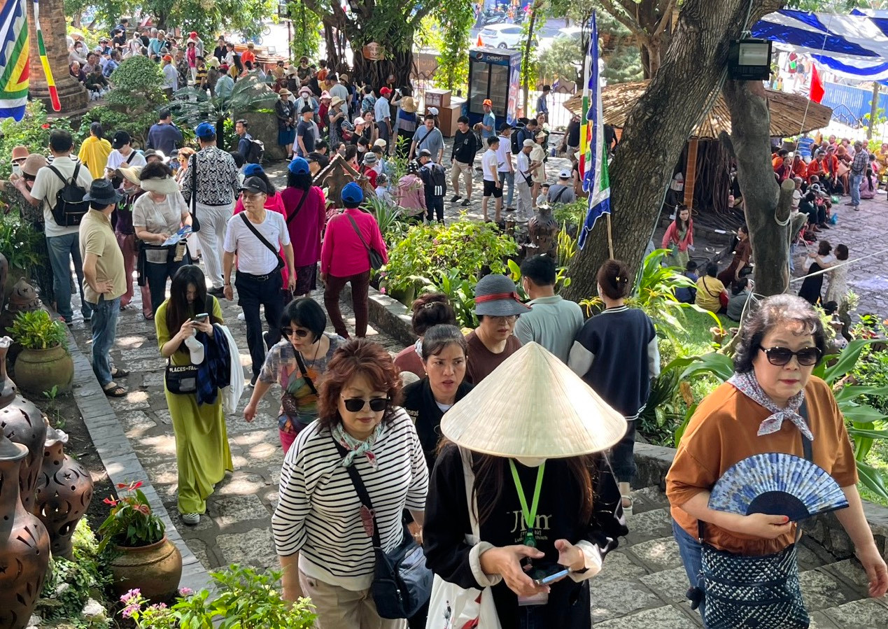 Những ngày này, tại khu di tích Tháp Bà Ponagar Nha Trang cũng đón số lượng lớn khách du lịch trong và ngoài nước đến tham quan.