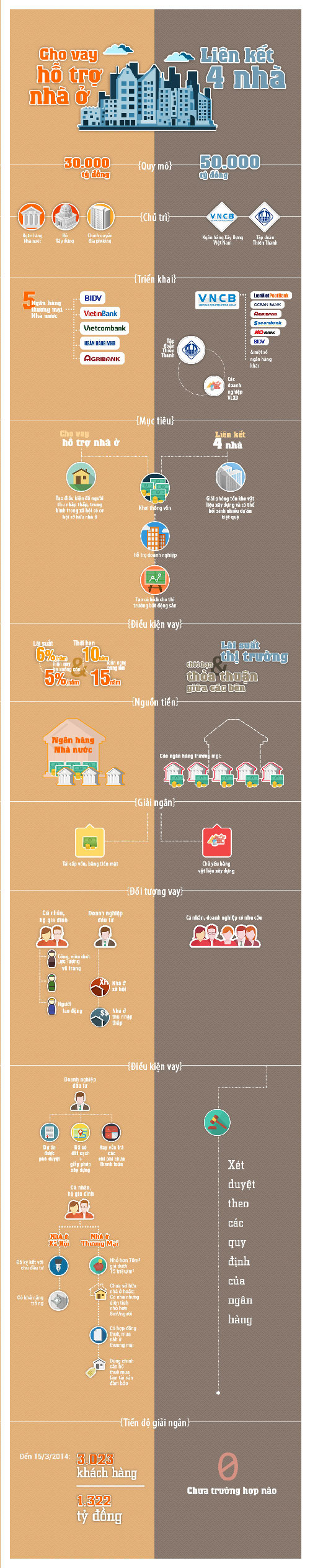 Ngân hàng Nhà nước một mặt đang cùng Bộ Xây dựng tích cực triển khai gói ưu đãi 30.000 tỷ nói trên, mặt khác cũng khuyến khích và giao cho một ngân hàng quốc doanh thiết kế chương trình tín dụng liên kết 4 nhà với cơ chế gần giống gói 50.000 tỷ của VNCB, nhưng đòi hỏi cao về tính khả thi của dự án vay vốn.