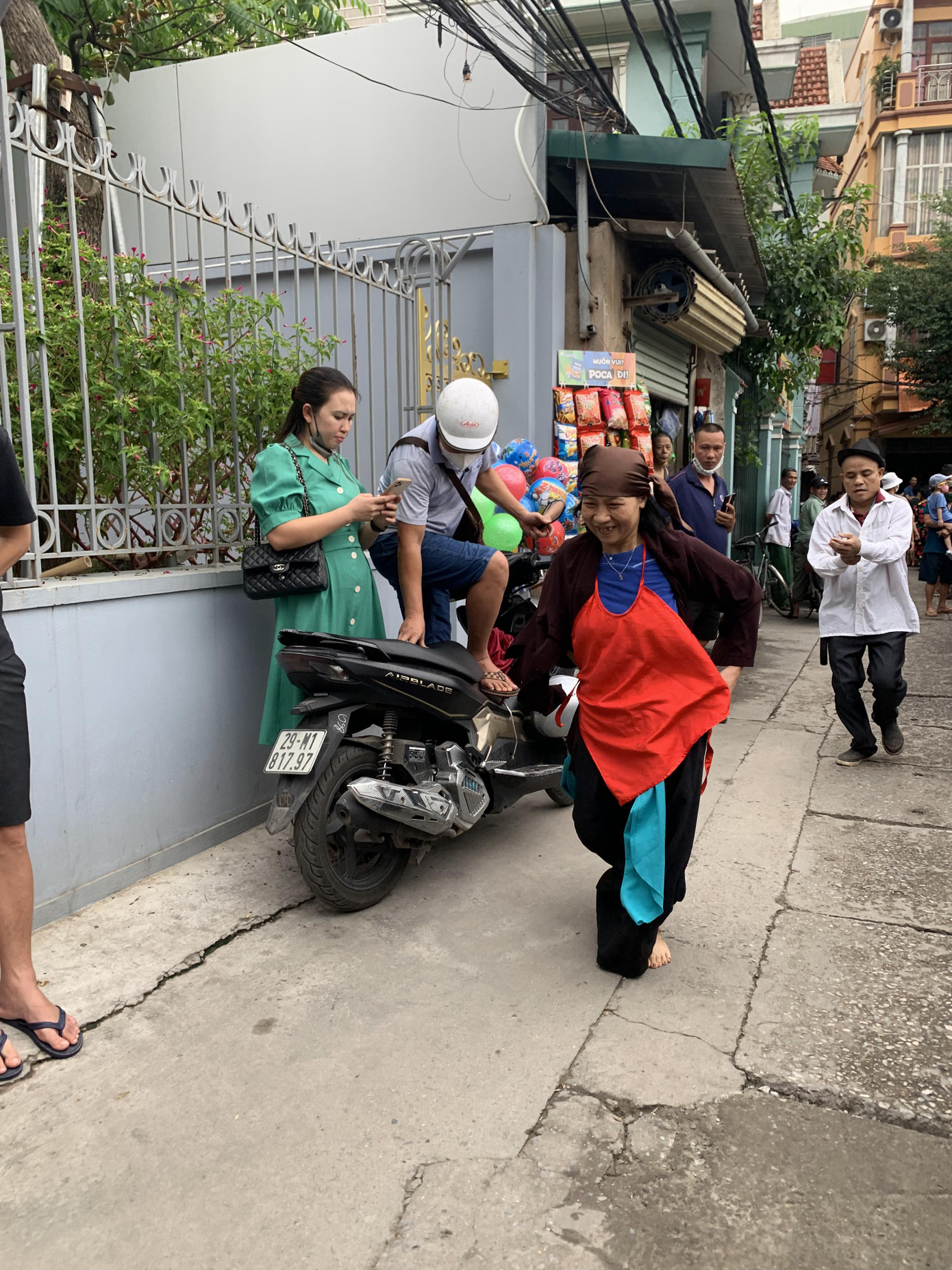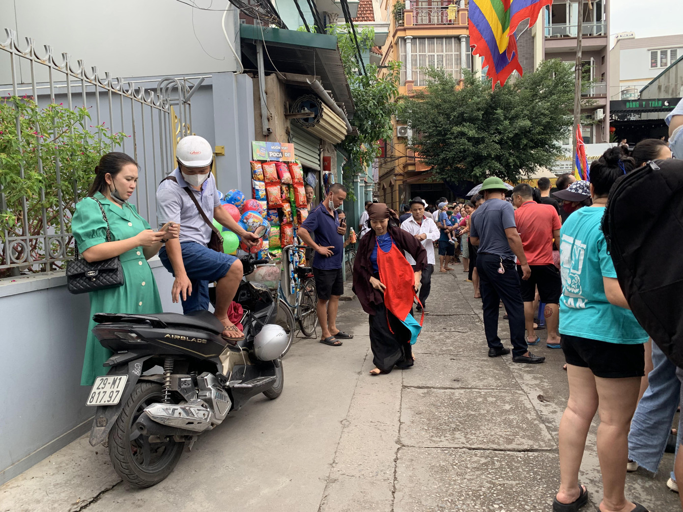 Một số thanh niên đã cởi áo chuẩn bị lao xuống ao Chùa bắt vịt, vớt bưởi, vớt dừa.