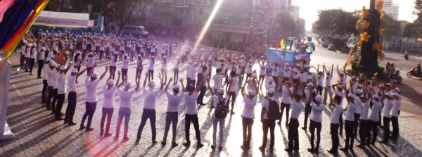 Đoàn viên thanh niên xếp hình chữ 60 + tại Cần Thơ. Ảnh: Hòa Hội