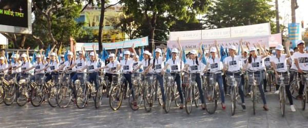 Đoàn viên thanh niên chuẩn bị diễu hành quanh thành phố Cần Thơ