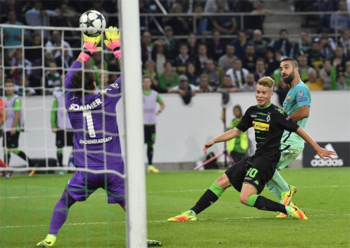Trong một ngày vận đen đeo bám, Neymar và Luis Suarez bỏ lỡ một loạt cơ hội trước khung thành Moenchengladbach. Trong khi đó, đội chủ nhà tấn công ít nhưng có được bàn mở tỷ số từ giữa hiệp một. Nếu không có quyết định thay người đúng đắn của HLV Luis Enrique, Barca có thể đã phải ôm hận. Chỉ vài phút sau khi vào sân, Arda Turan bắt vô-lê ghi bàn gỡ hòa. Không lâu sau đó, trung vệ Gerard Pique sắm vai người hùng của đội khách bằng pha đệm bóng đem lại chiến thắng ngược dòng 2-1.