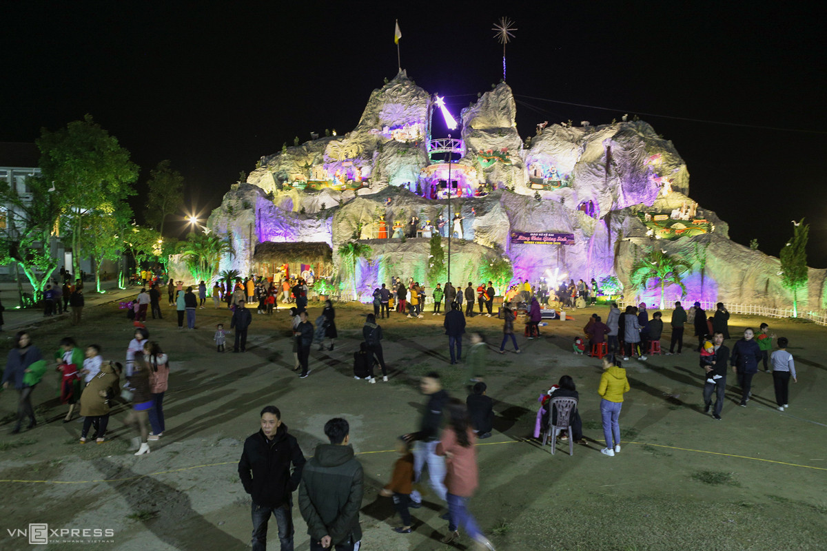 Hai hôm trước, công trình bắt đầu đón người dân tới tham quan, đông nhất lúc 19h đến 21h mỗi ngày. Công trình khởi công một tháng trước. Vật liệu bao gồm 2.000 cây mét (giống cây bương), 11.000 vỏ bao xi măng, 450 kg thép buộc, 5 tấn lốp xe ôtô, xe máy, 2.000 bóng đèn pha, hàng nghìn mét bóng nháy, tiêu tốn 2.000 ngày công. Kinh phí trang trải đều do bà con giáo dân tự nguyện đóng góp.