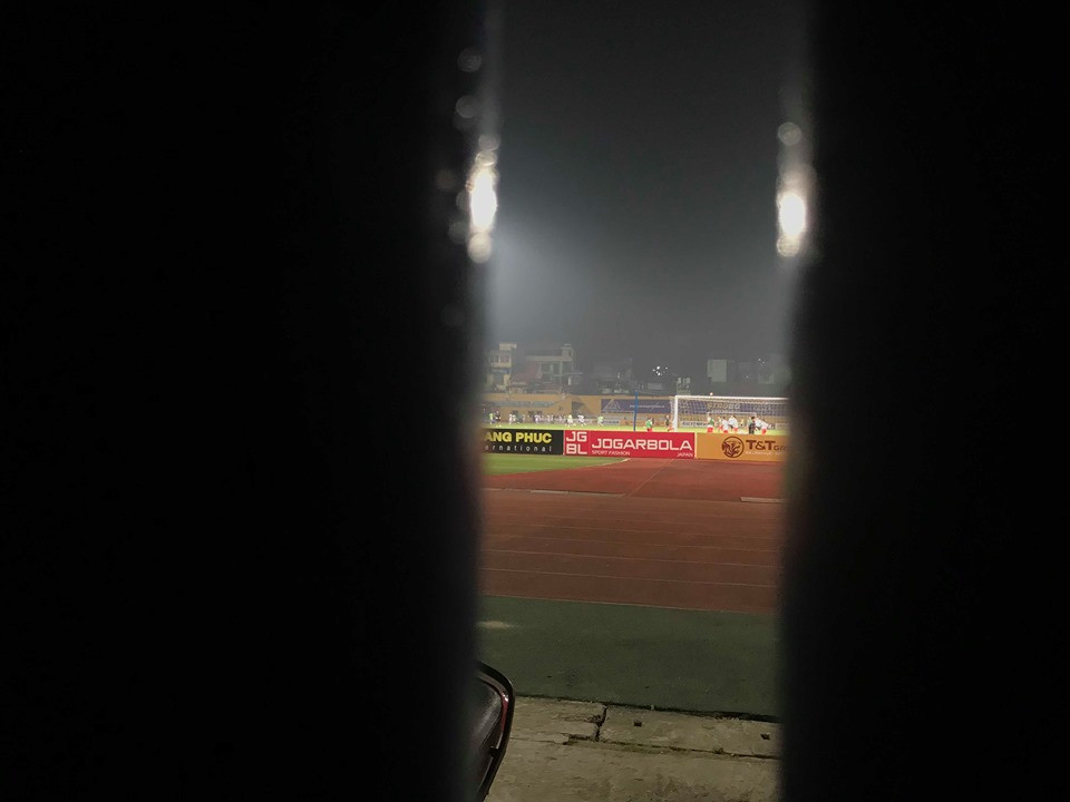 Khu vực quanh sân vận động khá vắng vẻ, vỉa hè không một bóng xe máy gửi.
