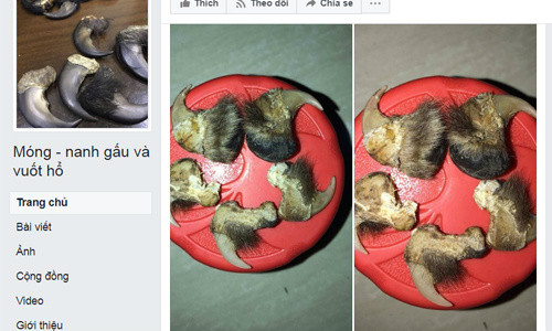 Trên Fanpage của cá nhân tên Tuấn được giới thiệu đang sinh sống tại Gia Lai thường xuyên đăng quảng cáo móng - nanh gấu và vuốt hổ. Không chỉ đăng trên trang cá nhân, anh này còn thường xuyên rao bán mặt hàng này trên một số nhóm và cho biết, những khách hàng có nhu cầu sẽ cung cấp địa chỉ để được giao hàng, thu tiền tận nơi.
