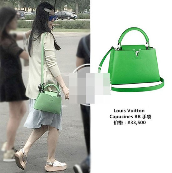 Bạn gái Lý Thần lựa chọn túi Capucines BB hiệu Louis Vuitton đi dạo phố. Giá trị của chiếc túi vào khoảng 115 triệu đồng.