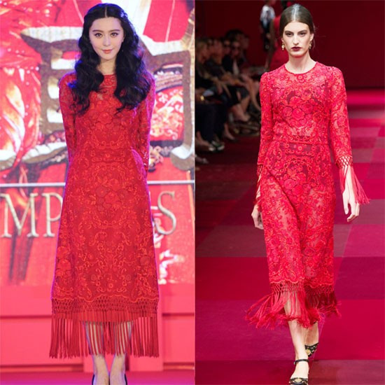 Mỹ nhân Hoa ngữ khoe vòng eo thon thả với váy đỏ hiệu Emanuel Ungaro 2015.