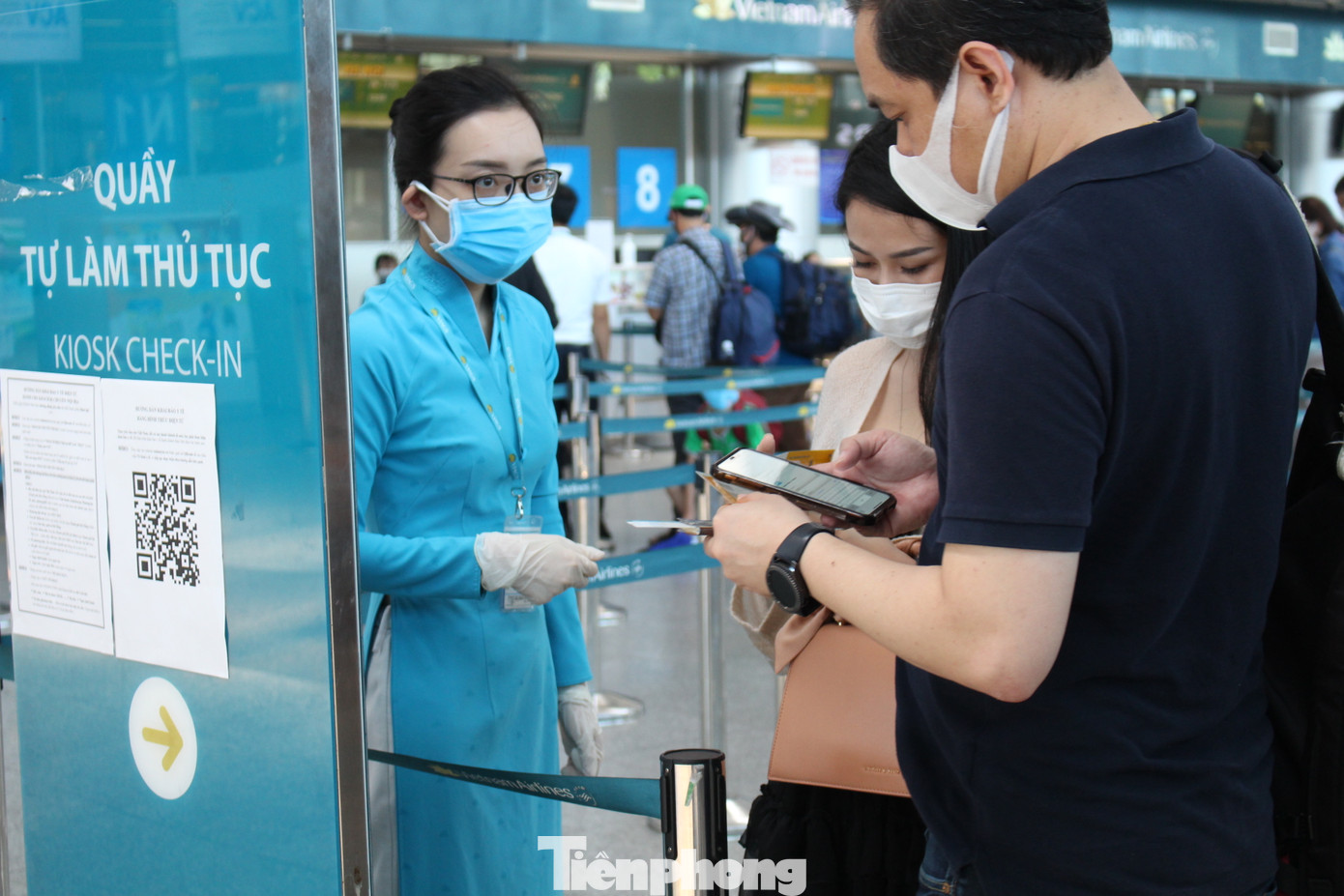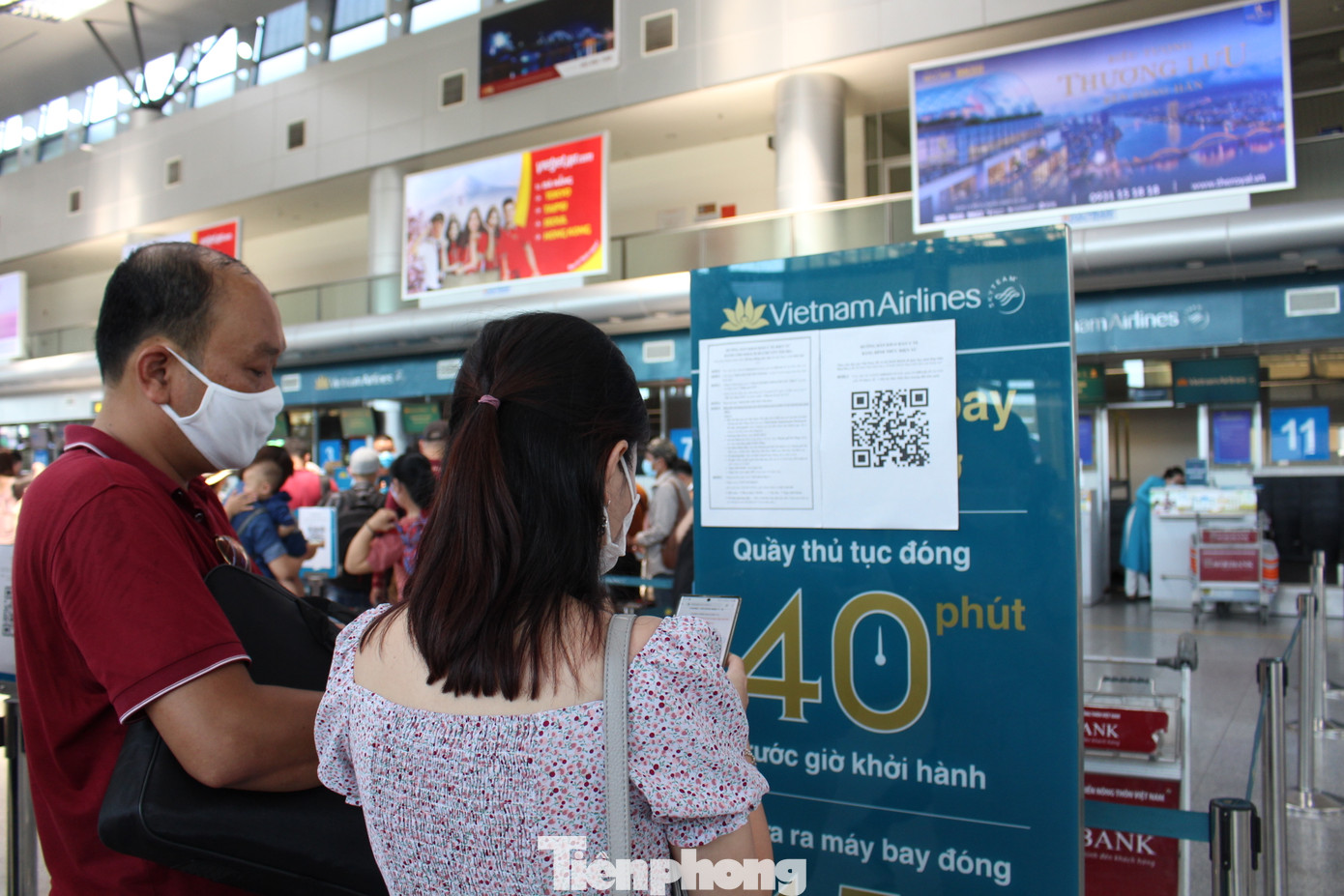 Chỉ cần quét mã QR, hành khách có thể dễ dàng khai báo y tế trực tuyến. Tất cả các hành khách đều nghiêm chỉnh chấp hành yêu cầu này trước khi qua cửa an ninh. Ảnh Giang Thanh
