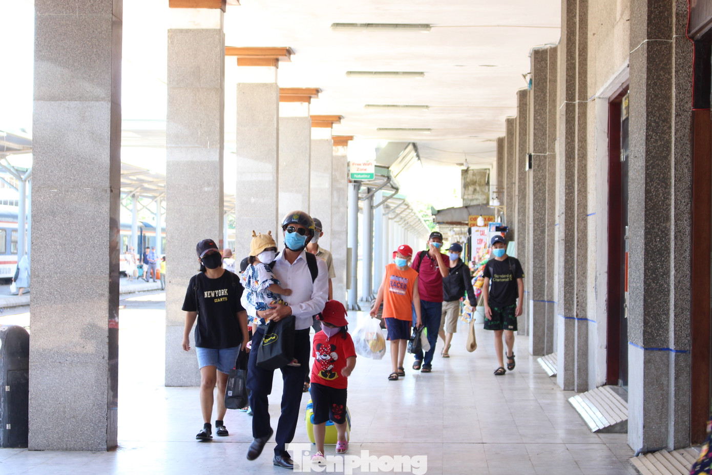 Những ngày gần đây, ga Đà Nẵng có lượng khách đi cao hơn khoảng 20% so với bình thường. Hành khách di chuyển bằng tàu hỏa bắt buộc phải khai báo y tế tại Ga Đà Nẵng. Ảnh Giang Thanh