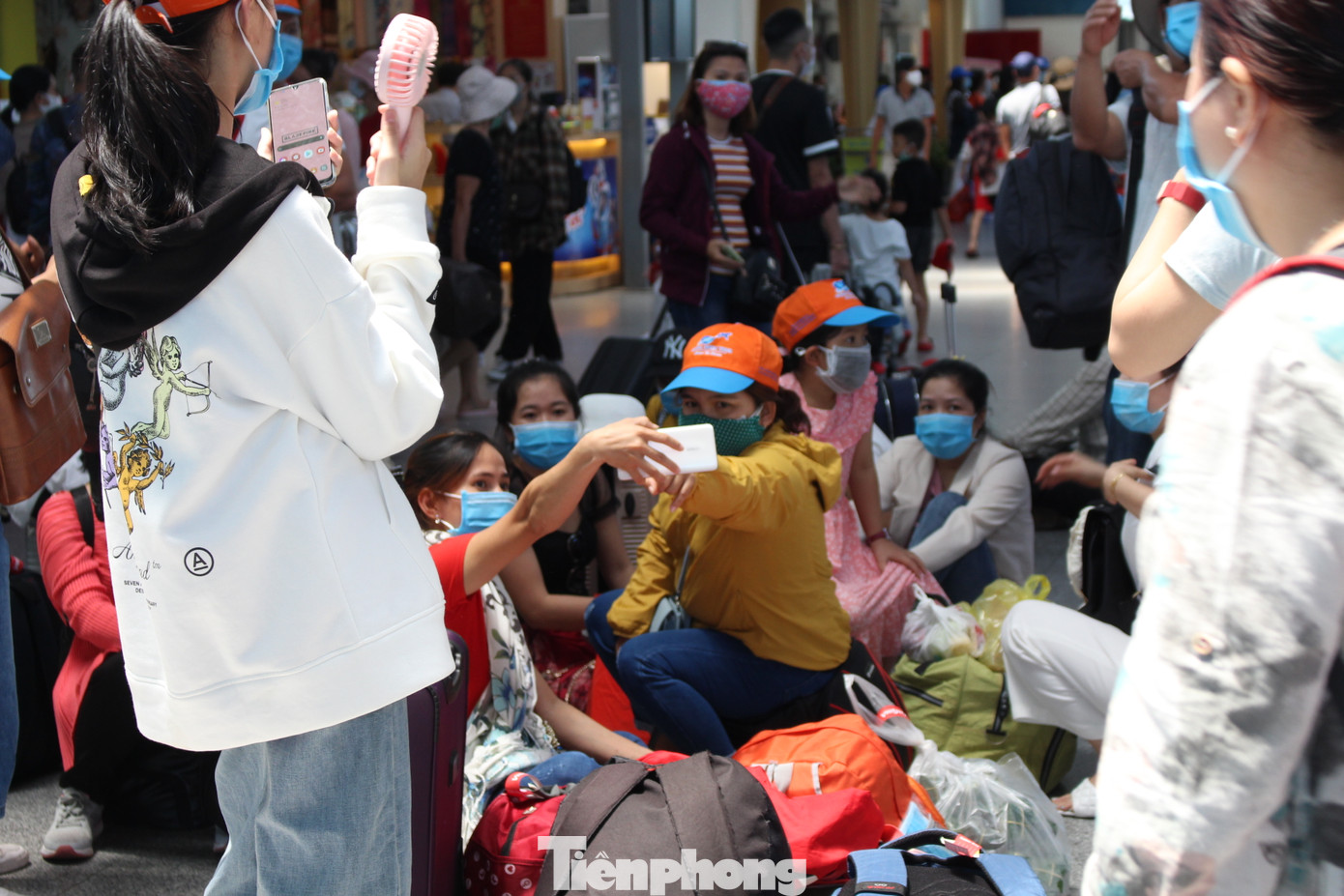 Đa phần người dân giữ tâm trạng khá thoải mái, họ thấy may mắn vì được tạo điều kiện để trở về. Một hành khách từ Hà Nội đến Đà Nẵng vào sáng 26/7 đã mua vé về vào trưa hôm nay. "Kế hoạch của gia đình là du lịch hè ở Đà Nẵng nhưng thành phố đã giãn cách xã hội. Gia đình tôi còn sợ mắc kẹt nhưng cuối cùng đã mua được vé", người này nói. Ảnh Giang Thanh