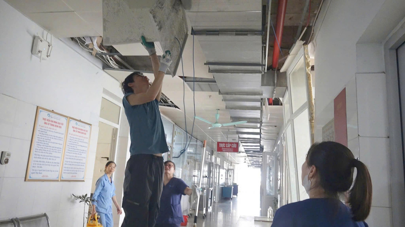 Bệnh viện Sản Nhi tại nhà A lật, bay mái tôn nóc tầng 4; vỡ nhiều cửa kính các phòng, hành lang. Lật bay nhiều tấm nhôm ốp trần, đứt dây điện, dây internet. Nhà B lật, bay mái tôn nóc tầng 4 (khu Hồi sức tích cực). Hỏng vỡ nhiều cửa kính các phòng khám từ tầng 1 đến tầng 3 các phòng. Vỡ, hỏng nhiều cửa ánh sáng khu vực hành lang, cầu thang. Vỡ cửa kính cửa sổ khu vực xét nghiệm, gây ẩm, ảnh hưởng máy xét nghiệm. Vỡ cửa ra vào sảnh B. Khu vực phòng DSA (phòng can thiệp- Phẫu thuật tim- mạch): Phần mái kỹ thuật, tủ kỹ thuật của lật, bay gây ẩm ướt, nguy cơ rất cao ảnh hưởng tới các trang thiết bị trong phòng. Nhà C, I lật, bay mái tầng 6 (trong đó là các buồng bệnh). Hỏng hệ thống nội thất trong các phòng như điều hòa, tủ lạnh, ti vi, giường, bàn ghế... Vỡ hỏng nhiều cửa chính, cửa sổ, cửa gió, cửa sáng trong các phòng bệnh, khu vực hành lang. Bay, hỏng các hệ thống lan can che ngoài hành lang. Nhà D lật, bay mái khu vực D8 (khoa hỗ trợ sinh sản), gây ảnh hưởng tới một số máy móc trên khoa. Vỡ cửa kính các cửa chính, cửa phụ, cửa sổ, hành lang các tầng (hành lang, buồng bệnh). Dột nước khu vực tầng 7, ảnh hưởng tới máy móc xét nghiệm liên quan tới hoạt động hỗ trợ sinh sản.