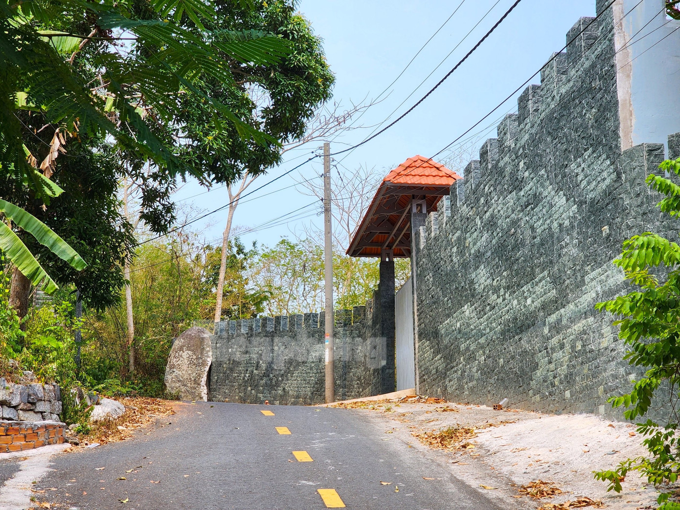 | Bờ tường kiên cố tại phủ thờ của gia đình bà L. Ảnh: Kim Hà. |