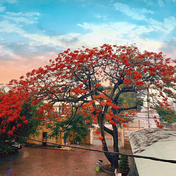 "Mùa Hè này thật là kì cục. Khi chúng mình tới trường vào những tháng Hè, thì phượng hồng chẳng còn. Biết việc chặt cây là cần thiết, nhưng nhìn cây bị chặt mà buồn quá" - tài khoản L.O chia sẻ.