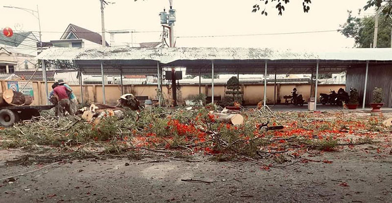 Trường Đại Học Nông Lâm TP.HCM đã quyết định đốn những cây phượng còn lại trong trường để đảm bảo an toàn cho sinh viên, cán bộ, giảng viên sau khi một gốc phượng trước cổng bảo vệ bị đổ.