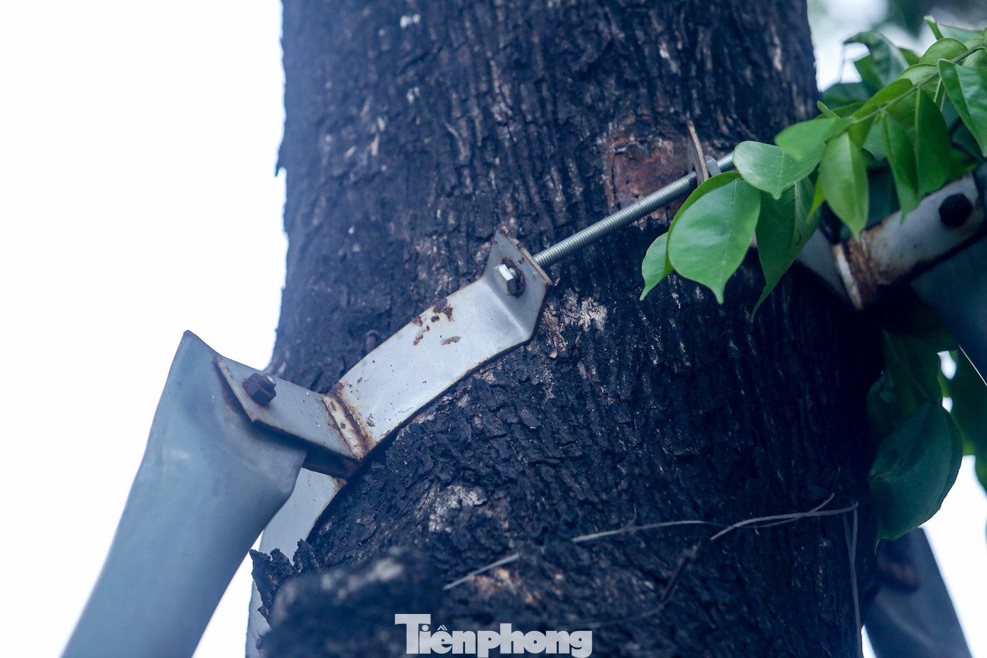 "Hàng cây ở đây đều đã cao lớn và vững chắc, cơ quan quản lý cần phải sớm tháo dỡ khung sắt cho cây tự phát triển. Bằng mắt cũng thể nhìn rõ là các vòng sắt đang siết những thân cây lại như "siết cổ", như vậy cây không thể lớn được", anh Định (quận Bắc Từ Liêm, Hà Nội) chia sẻ.
