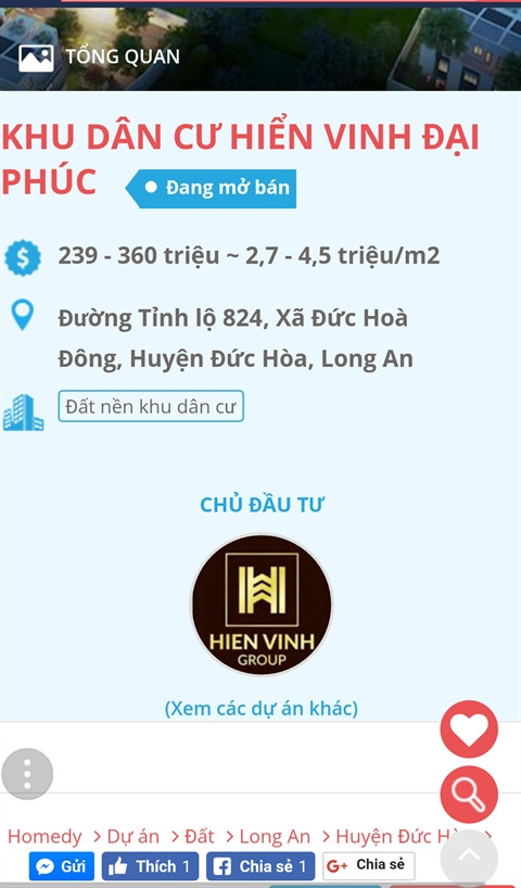 Trước dự án Hiển Vinh Group là đầm lầy Theo ghi nhận, mặc dù chưa được cấp phép, chưa có đầy đủ giấy tờ pháp lý, hạ tầng chưa được hoàn thiện nhưng cuối năm 2017, Hiển Vinh Group vẫn mở bán dự án Khu dân cư Hiển Vinh Đại Phúc tại xã Đức Hoà Đông, huyện Đức Hoà, tỉnh Long An, trên mạng internet, thông tin rao bán sản phẩm của chủ đầu tư rất nhiều.