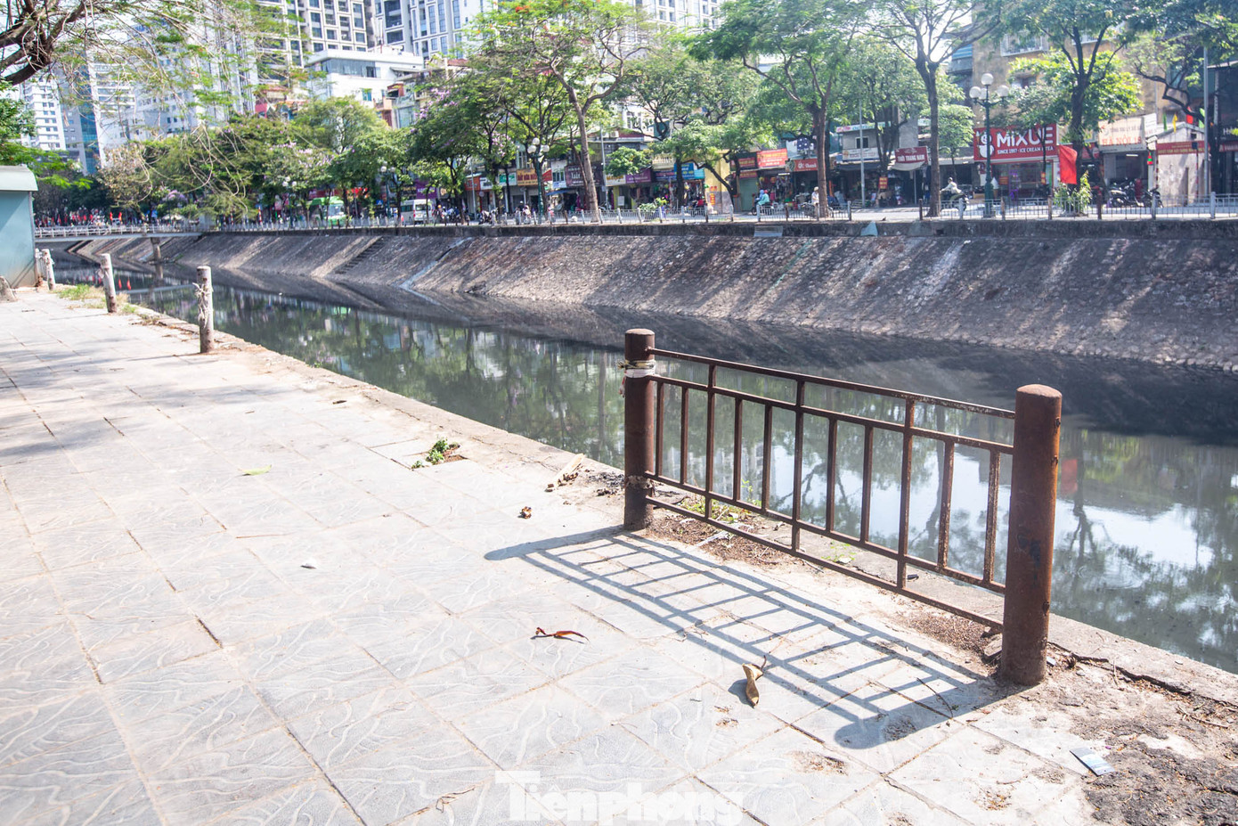 | Phần đoạn lan can dọc sông Kim Ngưu đã không còn. |