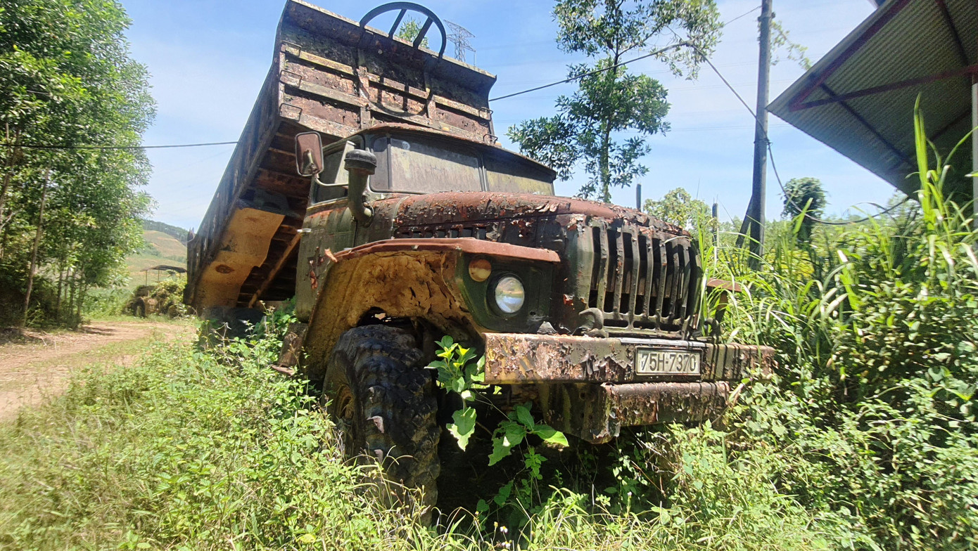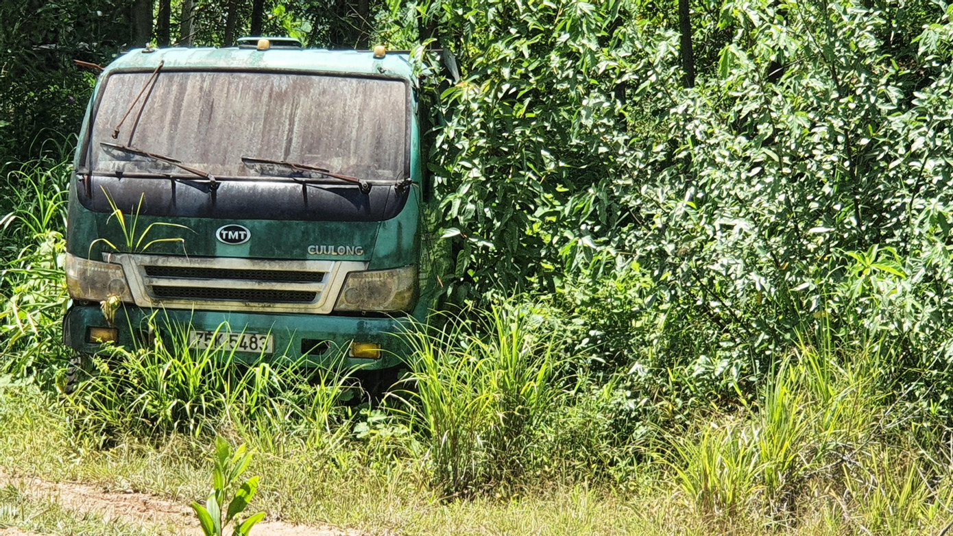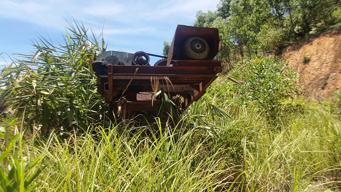 | Cỏ dại xâm lấn vào những chiếc ô tô, máy móc chuyên dùng bị bỏ phế lâu ngày không sử dụng. Ảnh: N.V |