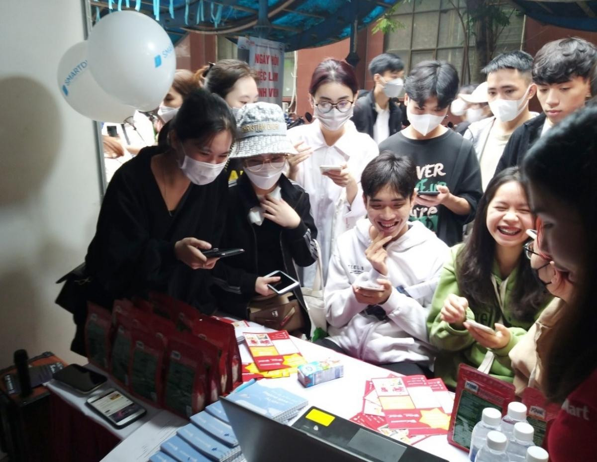 | Các bạn sinh viên tham quan và tìm hiểu các gian hàng của nhà tuyển dụng tại ngày hội. |