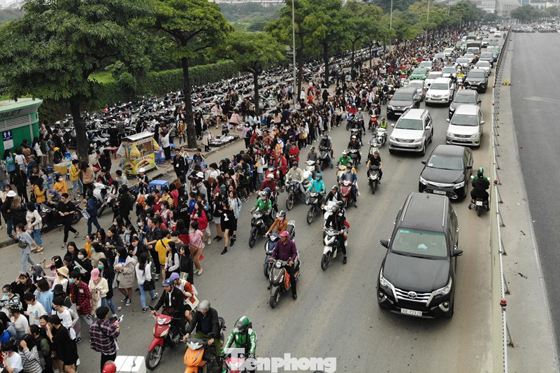 Toàn cảnh hàng nghìn bạn trẻ tràn xuống đường Lê Đức Thọ xếp hàng vào dự chương trình âm nhạc gây ùn tắc.