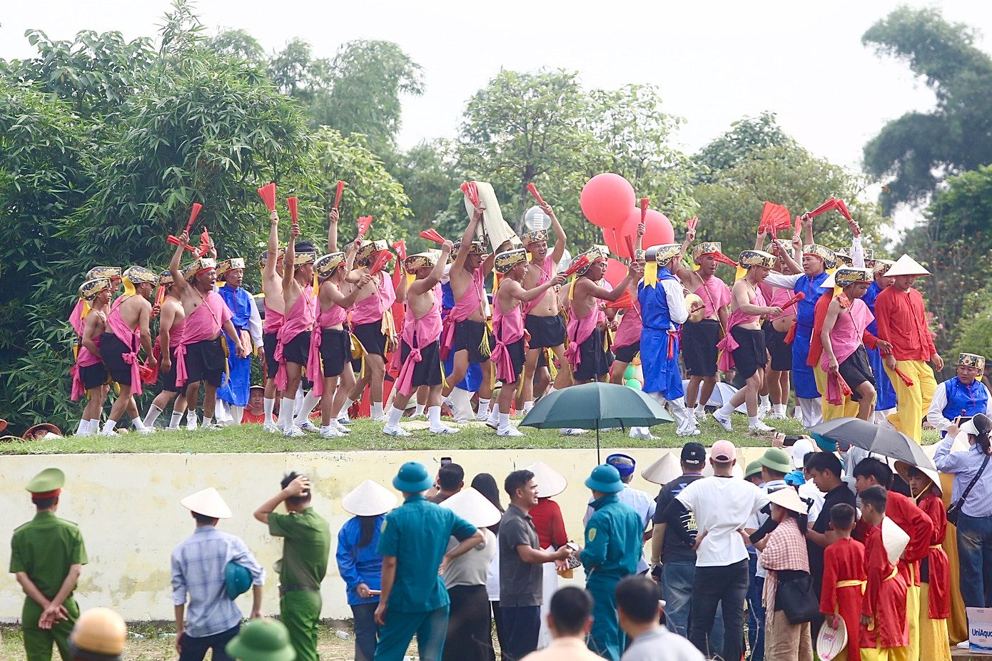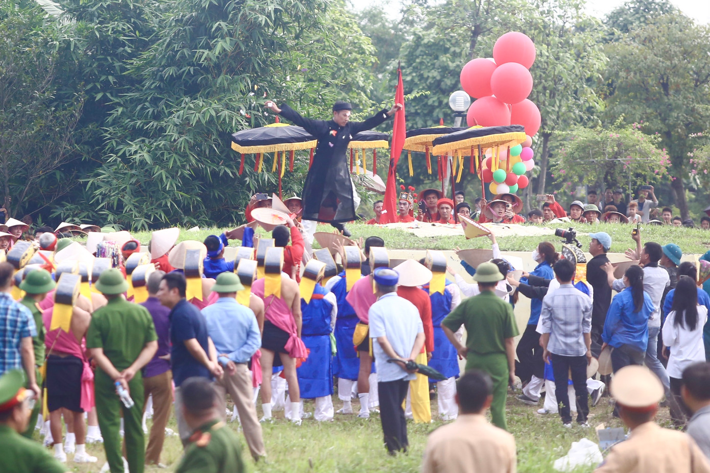 | Để tránh cảnh đánh nhau, cướp chiếu, cướp lộc Thánh như những năm trước đây, lực lượng chức năng chặn không cho người dân và du khách vào khu vực tái hiện trận đánh. |
