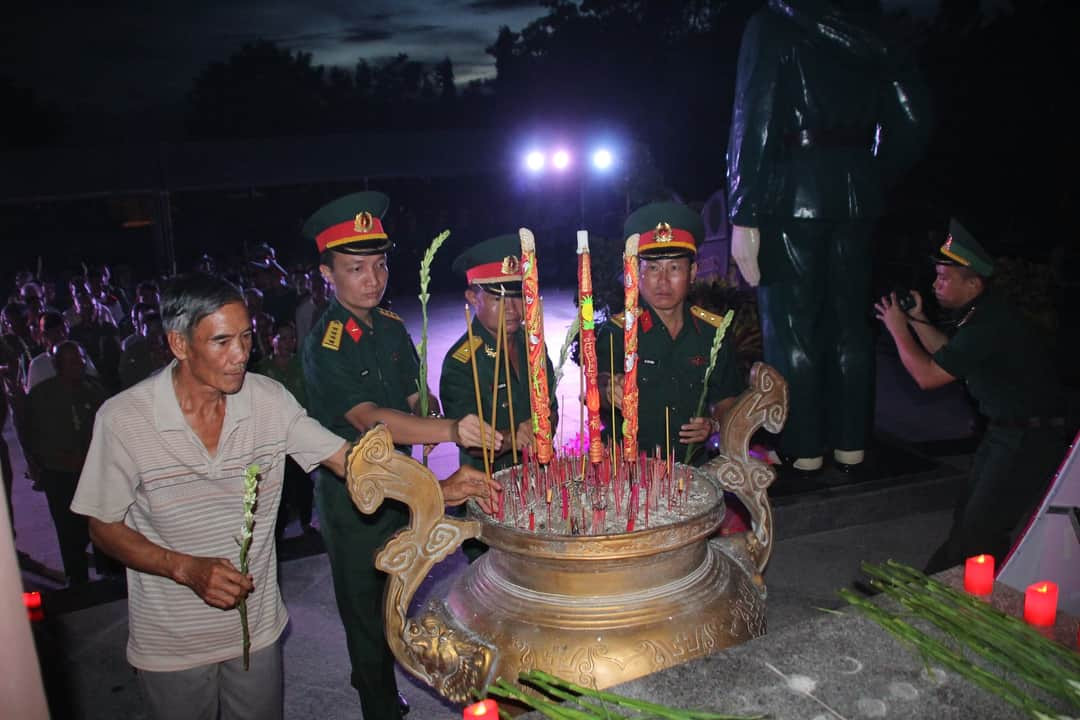 Tại An Giang, gần 700 cán bộ, ĐVTN “Thắp nến tri ân” các anh hùng liệt sỹ tại nghĩa trang liệt sĩ Dốc Bà Đắc (Tịnh Biên) nơi yên nghỉ của hơn 8.700 liệt sĩ.