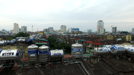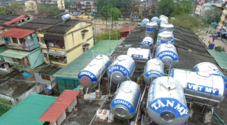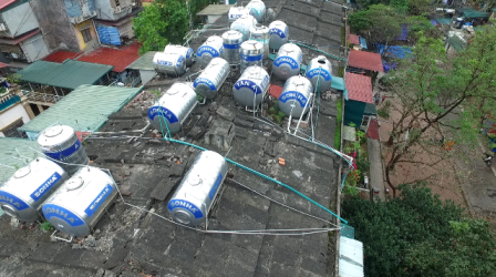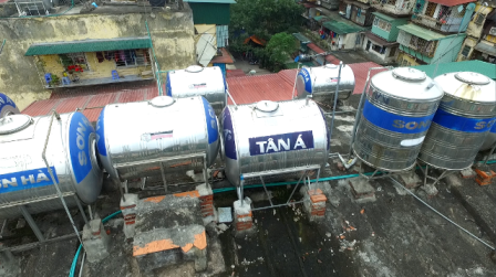 Tại nhiều khu chung cư cũ ở Hà Nội, như tại khu tập thể Thành Công, nhiều hộ dân đã lắp đặt hàng loạt các bồn chứa nước inox trên mái nhà để cung cấp nước sinh hoạt cho gia đình.