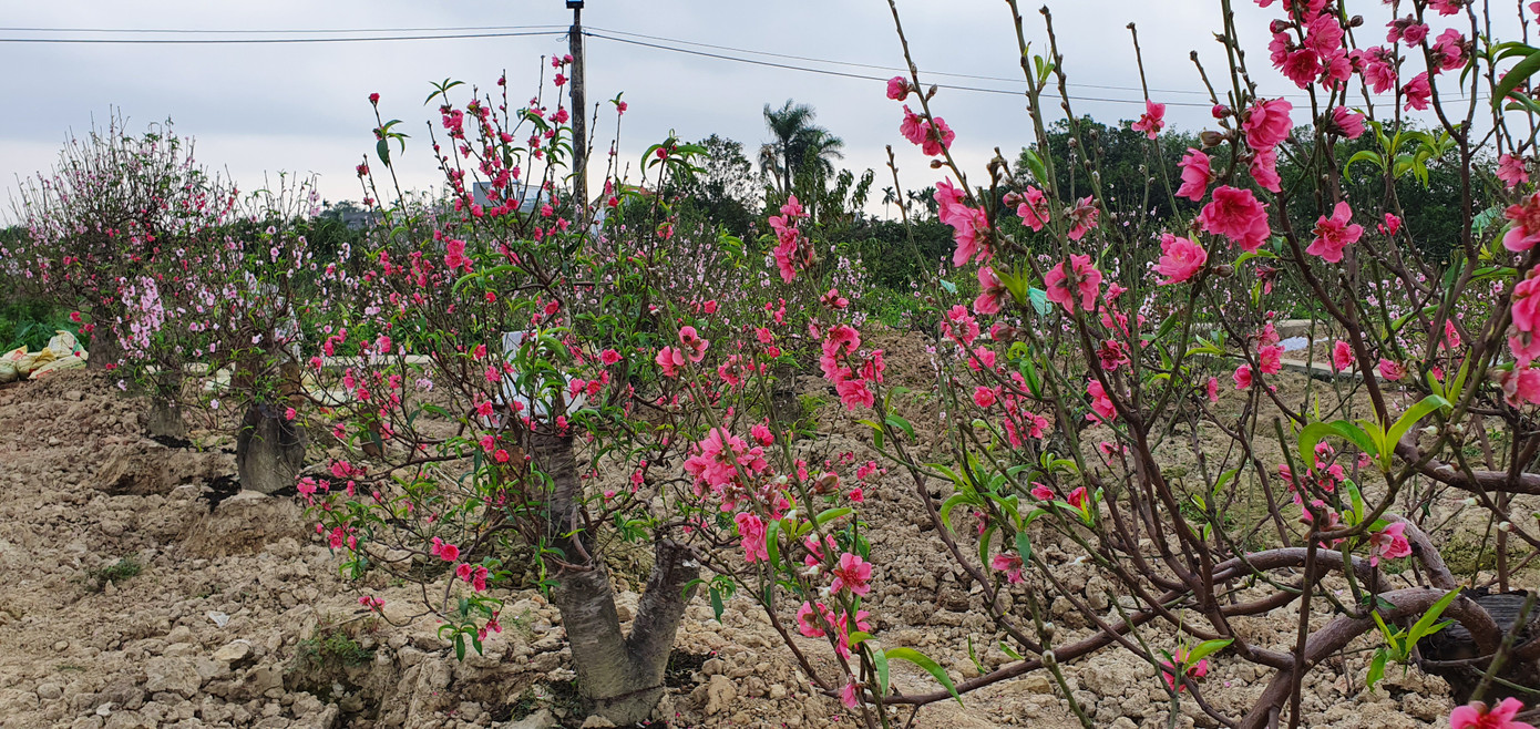 Những cây đào đua nhau bung hoa rực rỡ trước tết khiến nhiều hộ trồng đào tại làng Đồng Dụ thất thu.