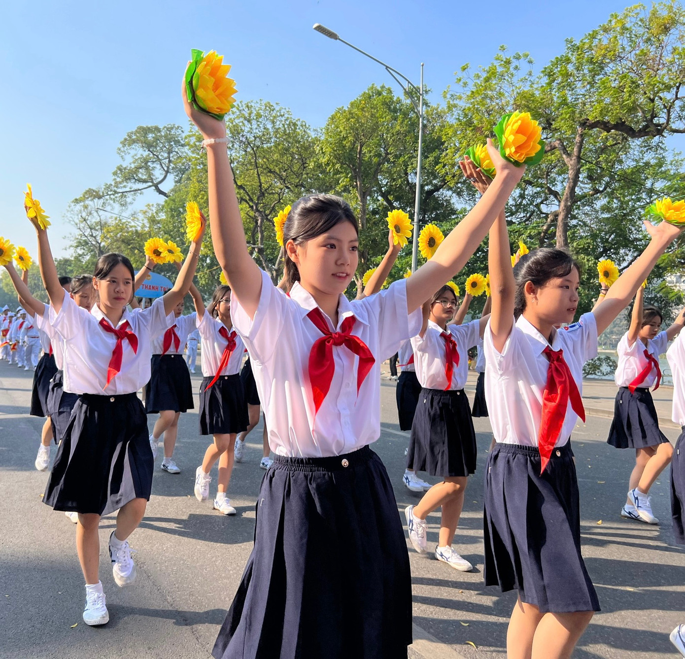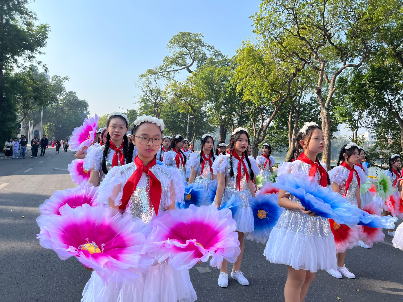 Đoàn nghi lễ Quân đội Bộ Tổng Tham mưu; Đoàn nghi lễ Bộ Công an; 30 đoàn học sinh THCS, THPT của 30 quận, huyện, thị xã; đoàn 70 nữ sinh Trường THPT Chu Văn An; Đoàn học sinh dân tộc thiểu số; Đoàn học sinh THCS, THPT một số trường quốc tế; đoàn xiếc; đoàn múa rối đã diễu hành, biểu diễn cực kỳ ấn tượng.