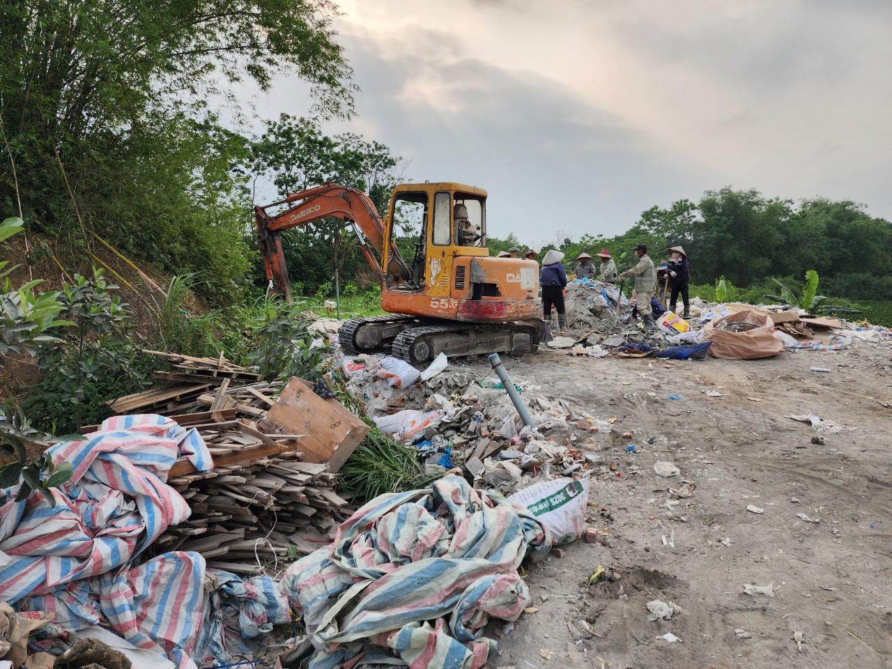 | Từ trên cầu Sông Đáy đến xã Vân Côn có nhiều điểm đổ trạc thải xây dựng. |